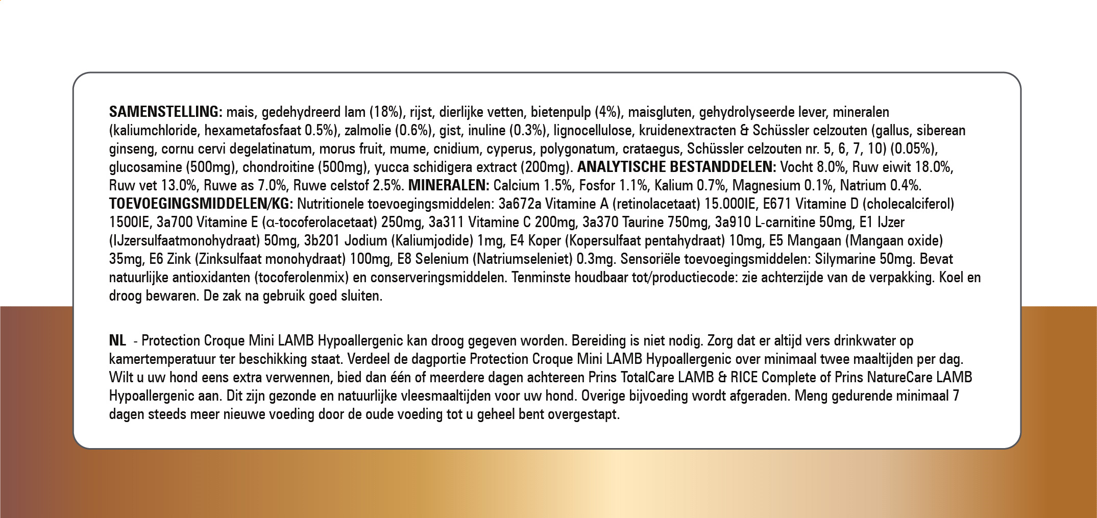 Protection Croque Mini Lamb Hypoallergenic הוא מזון לכלבים בוגרים מגזעים קטנים בעלי מערכת עיכול, עור ופרוות רגישים.