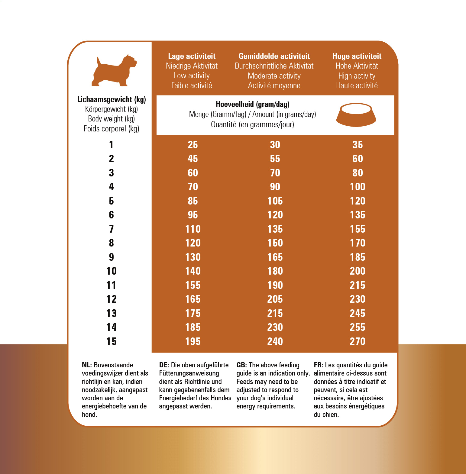 תירס, כבש מיובש (18%), אורז, שומנים מן החי, עיסת סלק (4%), גלוטן תירס, כבד שעבר הידרוליזה, מינרלים (אשלגן כלורי, הקסמטפוספט 0.5%), שמן סלמון (0.6%), שמרים, אינולין (0.3% ), תאית ליגנו, תמציות עשבי תיבול ומלחי תאי שוסלר (גלוס, ג'ינסנג סיבירי, קורנו cervi degelatinatum, פירות מורוס, מומה, קנידיום, cyperus, polygonatum, crataegus, מלחי תאי שוסלר מס' 5, 6, 7, 10%) (0.000 ), גלוקוזאמין (500 מ"ג), כונדרויטין (500 מ"ג), תמציות יוקה schidigera (200 מ"ג), Bacillus subtilis (100 מ"ג).